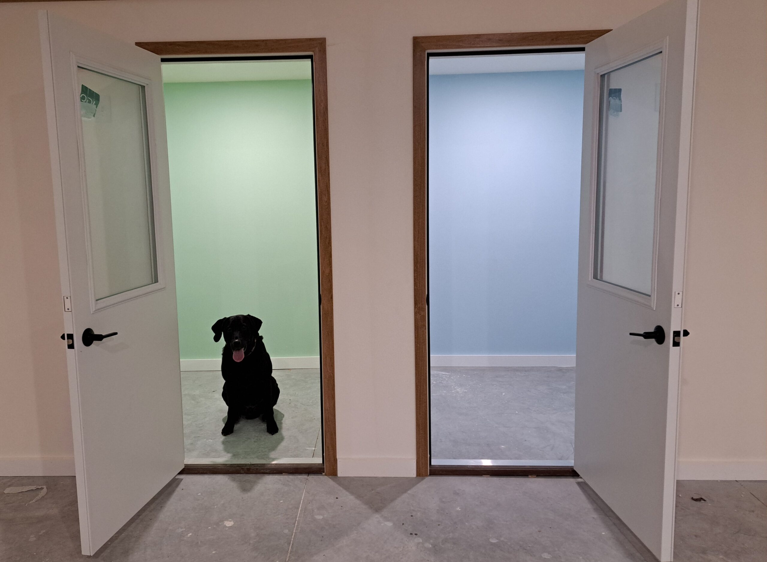 Let your vacation be your dog’s vacation too! Dogs staying at Tails and Trails enjoy spacious kennels ensuring they have plenty of room to stretch out and relax during their stay. We offer a variety of accommodations including kennels, dens, and cottages. Each of our kennels features an elevated Kuranda bed for your pet’s comfort. Our dens are spacious enough to accommodate multiple family members and come equipped with a TV. The cottages provide a large, individual bedroom featuring a cozy bed and a TV. Our boarding facility is designed with your pet’s comfort in mind, featuring climate-controlled indoor resting and sleeping areas, fresh air exchange systems, and UV purifiers. We also provide 24/7 video surveillance and soothing music to create a relaxing environment. For those rooms equipped with a TV, “Dog TV” is available for your pet’s viewing pleasure. Boarding at Tails and Trails isn’t just about staying indoors. Dogs will enjoy regular outdoor playtime in our secure play areas. Enhance your dog’s stay by adding enrichment activities or a stimulating walk on our scenic trails and add peace of mind by adding photo updates. Be sure to check out our list of boarding add-ons.
